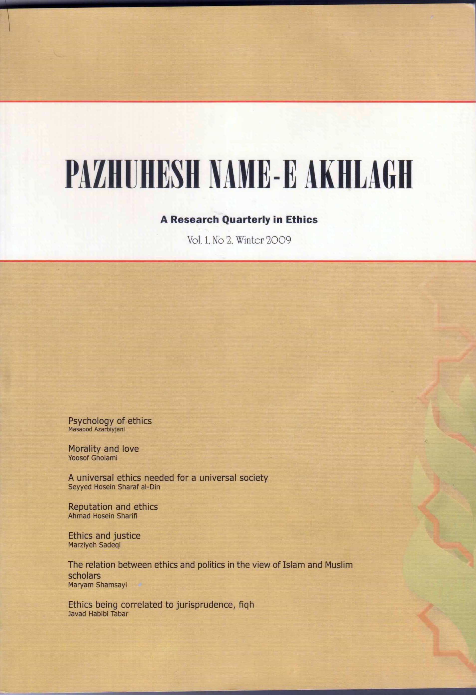 PAZHUHESH NAME-E AKHLAGH Vol 1 . No 2. Winter 2009